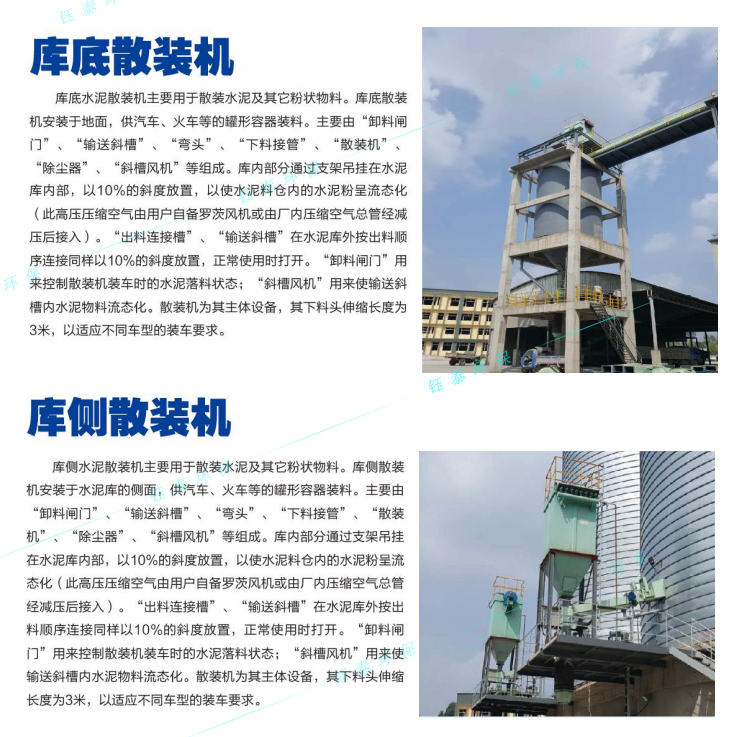 汽車散裝機是將庫內的粉料或骨料自動無塵裝車的設備。汽車散裝機主要由手動棒閥,電動扇形閥,卷揚裝置,伸縮卸料裝置、收塵軟管,電容式限位開關,電控系統等部分組成。