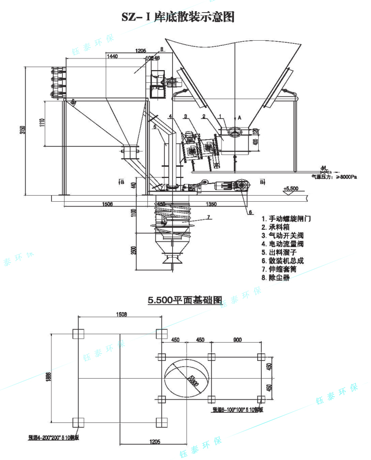 汽車散裝機是將庫內的粉料或骨料自動無塵裝車的設備。汽車散裝機主要由手動棒閥,電動扇形閥,卷揚裝置,伸縮卸料裝置、收塵軟管,電容式限位開關,電控系統等部分組成。當汽車進入位置后,打開棒閥相應的棒條數量。按住控制柜的“下降鈕”,下料頭到位后會自動斷開升降電機電源,按“裝車鈕”進入卸料狀態,輔助配套設備會相應開始工作,卸料產生的灰塵通過進料斗,由伸縮收塵軟管進入收塵器凈化,當下料頭的物料裝滿時,下料頭邊上升,邊報警,上升距離要在裝料前設置。若上升距1米,則將時間繼電器的時間調為T=1N。在上升過程中裝料始終在進行,當下料頭滿時,再重復上述動作,到達料滿位置后,按停車鈕,使電振機反制動,或關閉扇形閥下料停止工作,其它設備相應停止工作。停車后可按上升按鈕讓下料斗離開物料一定距離,確保運輸工具的移動,再對準第二個卸料工位。直到整個料倉裝滿為止